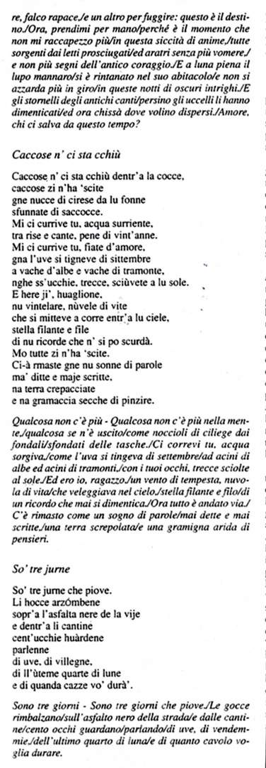 | Arrucelarse - Anticaje - Da li ripare - Ggiahante d'ombre - La notte - Lu fatte - Lu papambele - Na pidicata ligge - Ombre di pinzire - Pirdunece Signore - A mio Padre - | ||||||||